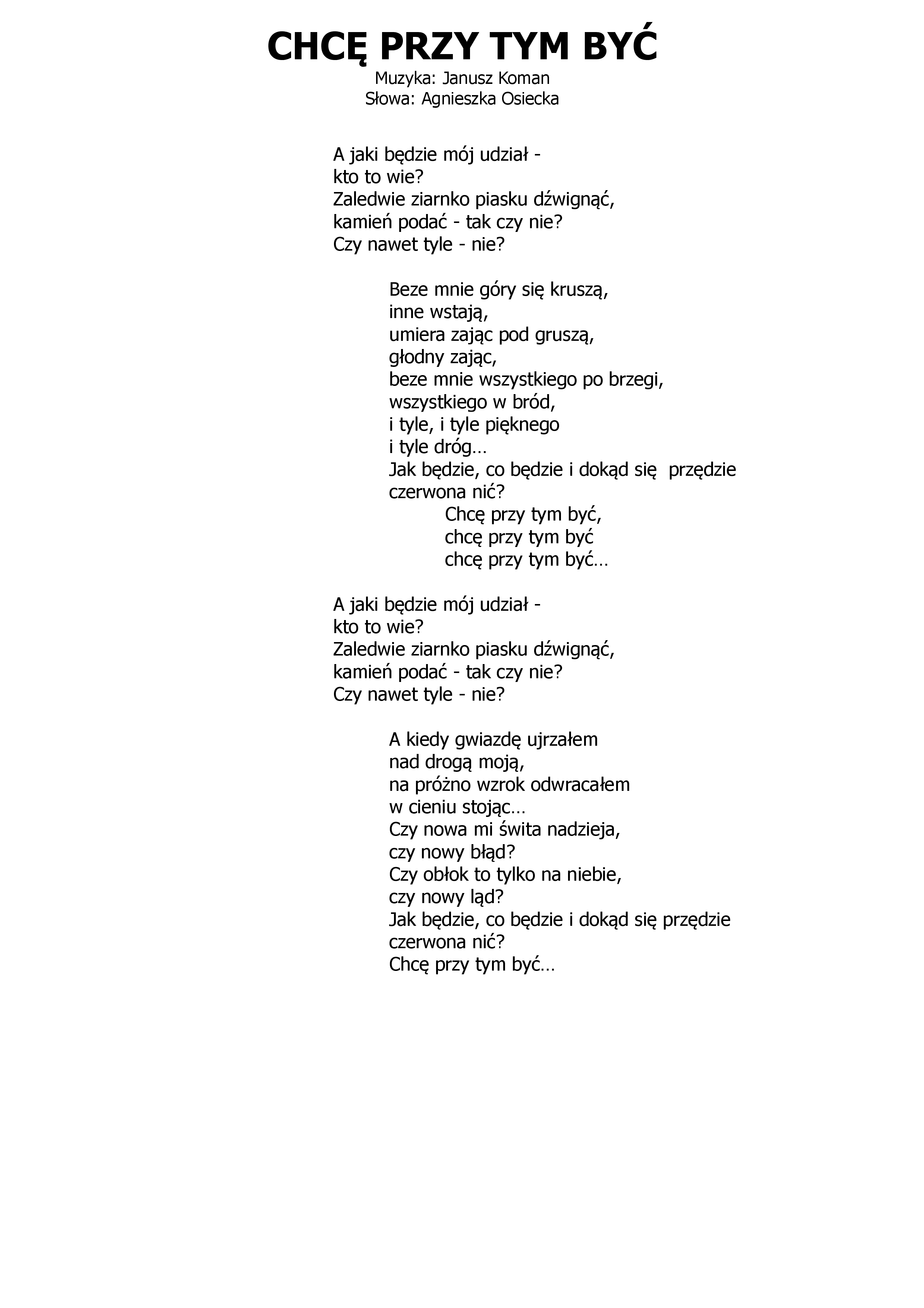 | (muz. Jacek Mikuła, wyk. Maryla Rodowicz) | (muz. Jacek Mikuła, wyk. Maryla Rodowicz) |