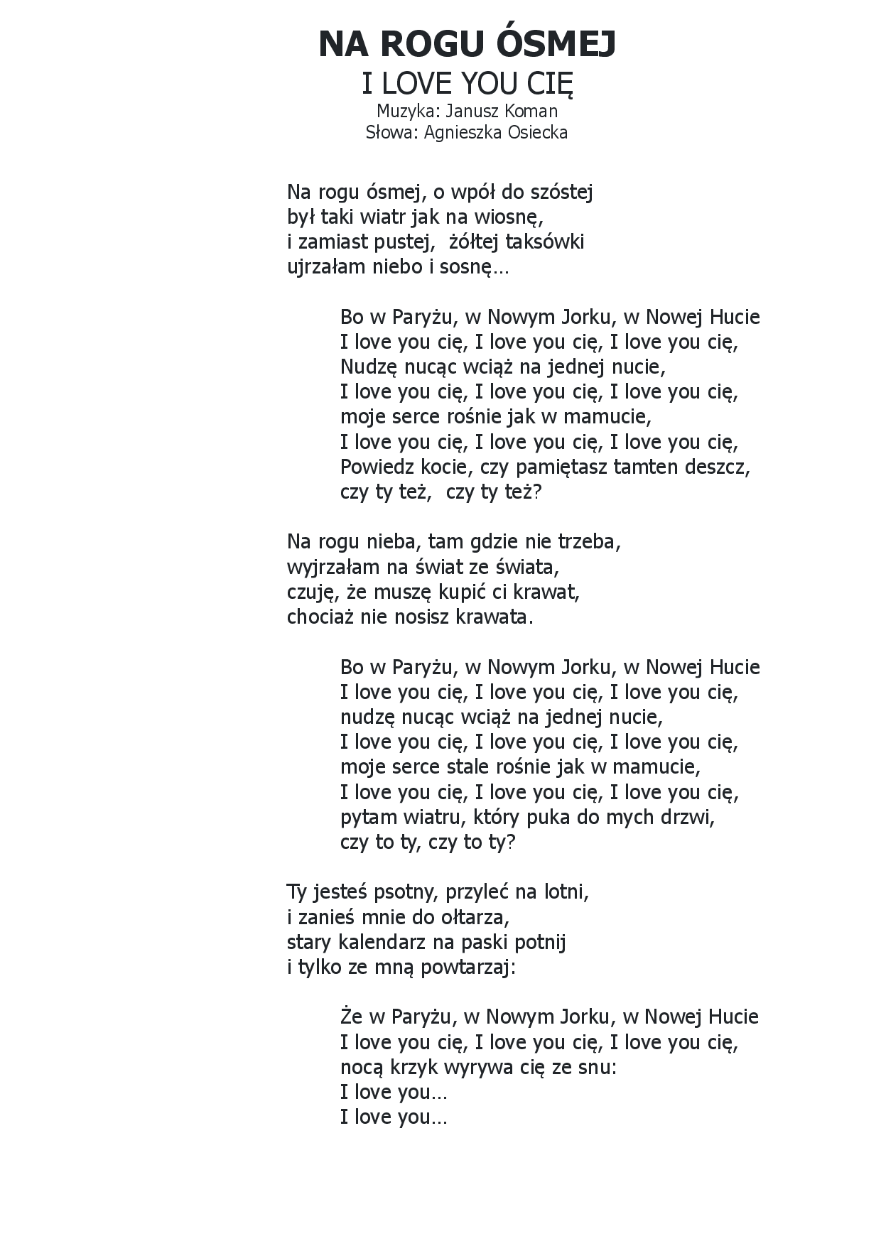 | (muz. i wyk. Majka Jeżowska) | (muz. Jarosław Abramow, w repertuarze Igi Cembrzyńskiej) |