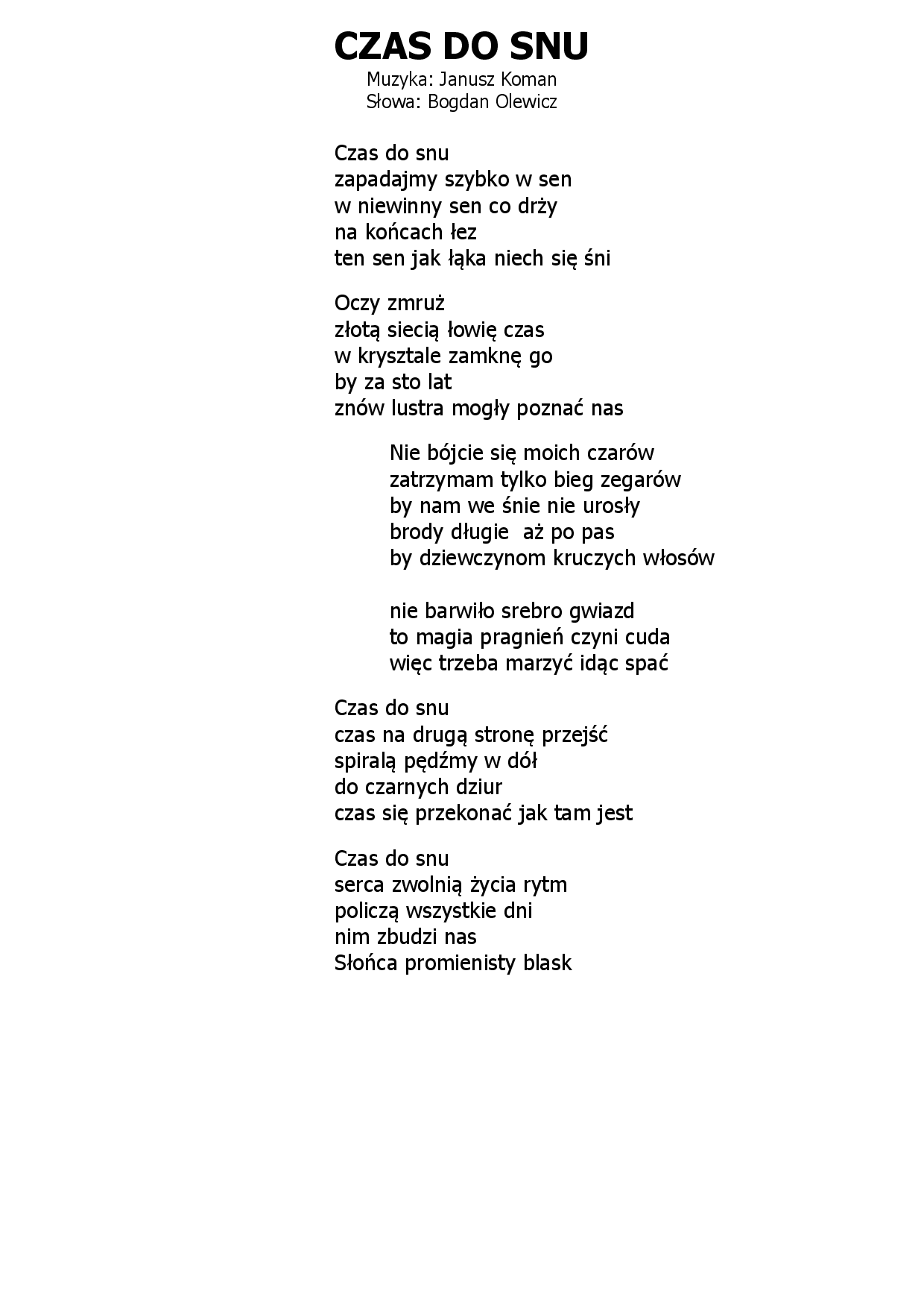 Czas do snu Janusz Koman, Bogdan Olewicz |