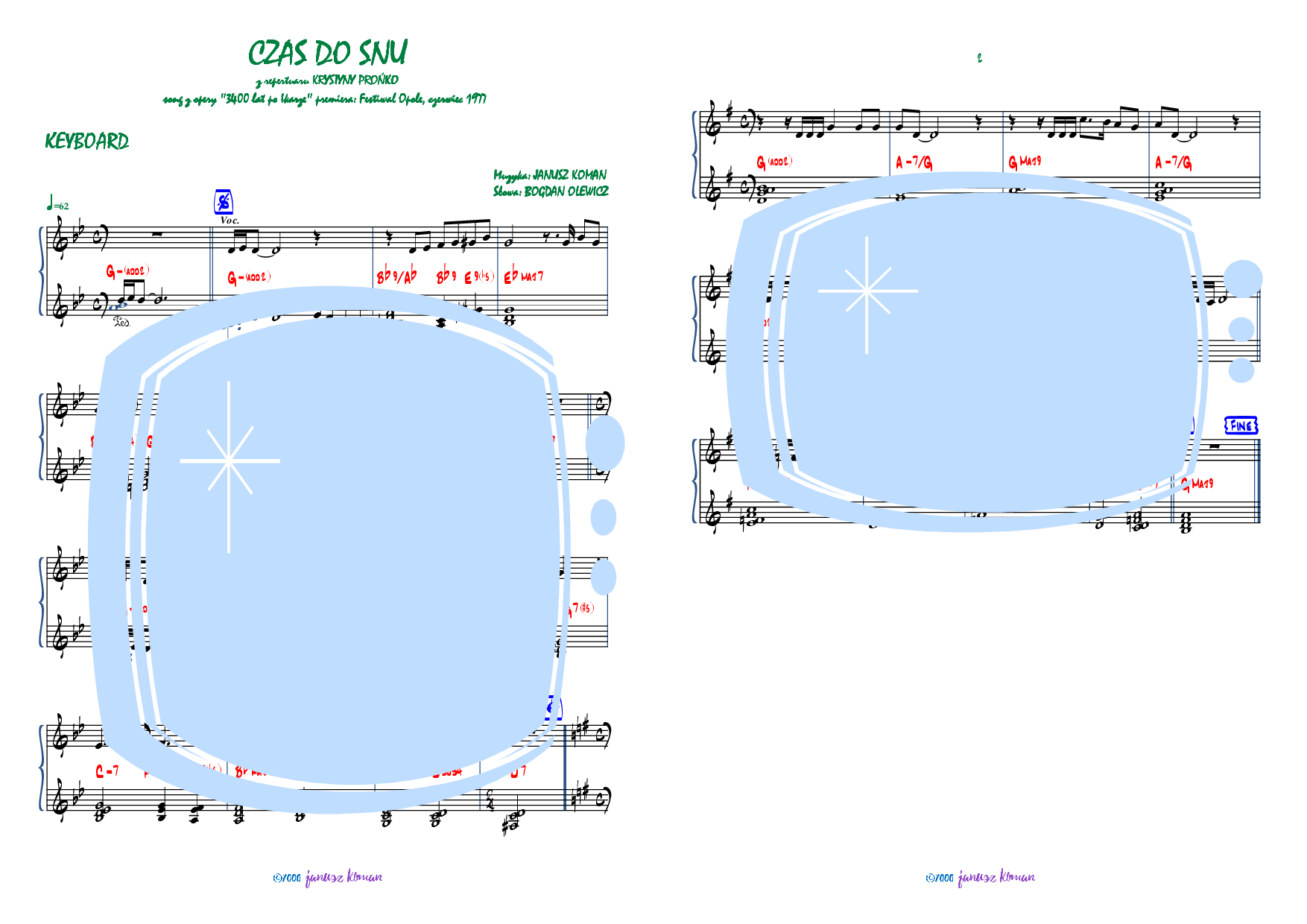 Współpraca twórcza: Stan Borys, Andrzej Dąbrowski, Wojciech Młynarski, Zbigniew Wodecki, Ryszard Rynkowski, Zbigniew Namysłowski, VOX, „2+1”, Czerwono-Czarni, Niebiesko-Czarni, Andrzej Zaucha, Hanna Banaszak, Ewa Bem, Majka Jeżowska, Jacek Skubikowski, Grażyna Łobaszewska, Krystyna Prońko, Zdzisława Sośnicka, Urszula Sipińska, FIESTA, Janusz Kondratowicz, Maria Czubaszek, Bogdan Olewicz, Włodzimierz Patuszyński, Wojciech Waglewski, Jan Wołek, Danuta Błażejczyk, Krzysztof Krawczyk, Krzysztof Dzikowski, Grzegorz Walczak, Janusz Szczepkowski, Jacek Korczakowski, Leonard Kaczanowski, Andrzej Olejniczak, Krzysztof Ścierański, "Adzik" Sendecki, Zbigniew Jaremko, Jan Zając, Marek Dutkiewicz, Agnieszka Osiecka, Jonasz Kofta, Maria Czubaszek, Jerzy Gruza, Janusz Kondratiuk, Orkiestry: Henryka Debicha, Stefana Rachonia, Zbigniewa Górnego, Jerzego Miliana, Andrzeja Trzaskowskiego, PRiTV w Katowicach Koncerty: Europa, Bliski Wschód, Kuba, Włochy, oraz całe terytorium byłego ZSRR Nagrania: ponad 400 utworów dla Polskiego Radia, TV, Polskie Nagrania, Pronit, JKP Studio, musicale, rock-opery, muzyka filmowa, teatralna i baletowa. Film: 2010-2012: pełnometrażowych wywiadów filmowych wybitnych twórców Stowarzyszenia Autorów ZAiKS takich jak: Jacek Bocheński, Józef Hen, Wojciech Młynarski, Jacek Cygan, Romuald Lipko, Jerzy "Duduś" Matuszkiewicz, Edward Pałłasz, Ryszard Poznakowski, Eustachy Rylski, Krzysztof Dzikowski, Feliks Falk, Zbigniew Hołdys, Janusz Kondratowicz, Henryk Kuźniak, Ilona Łepkowska, Janusz Majewski, Andrzej Mogielnicki, Bogdan Olewicz, Adam Sławiński. Wydawnictwo Koman Production: Od 2000 roku - do maja 2017 roku opracowano około 5 000 tytułów w formie partytur, fortepianówek oraz głosów na instrumenty: vocal, guitar, keyb., bass, drums. W 2021 został odznaczony Brązowym Medalem „Zasłużony Kulturze Gloria Artis”. |