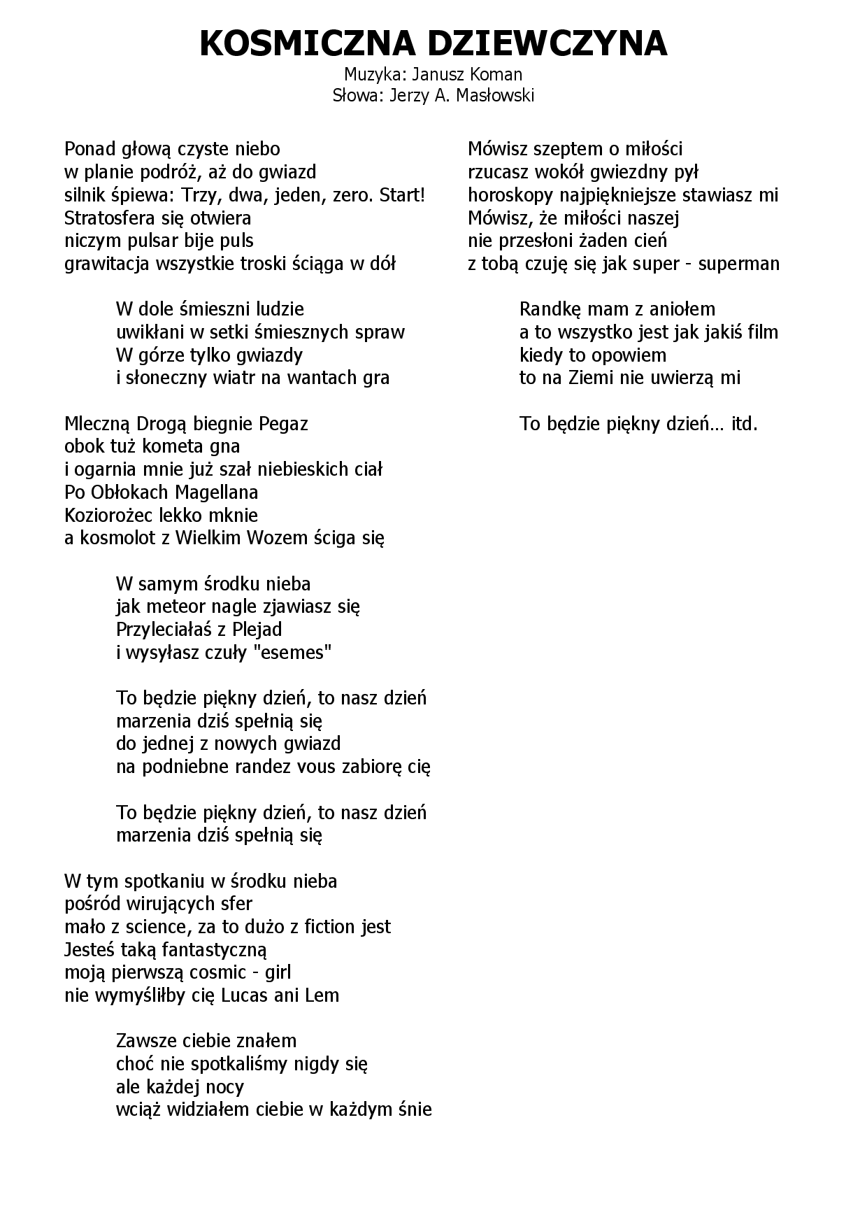 Kosmiczna dziewczyna Janusz Koman - Jerzy Andrzej Masłowski |