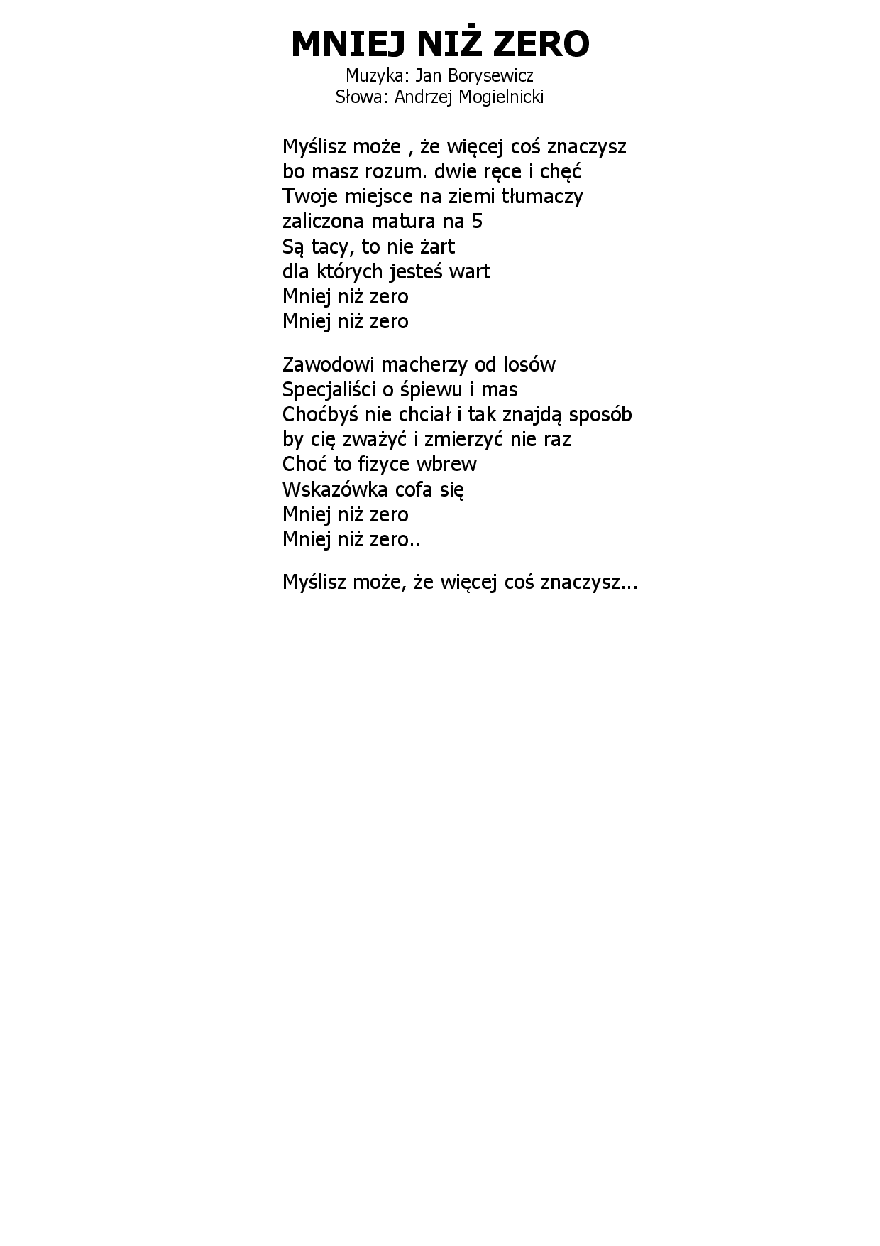 Mniej niż zero Jan Borysewicz - Andrzej Mogielnicki |