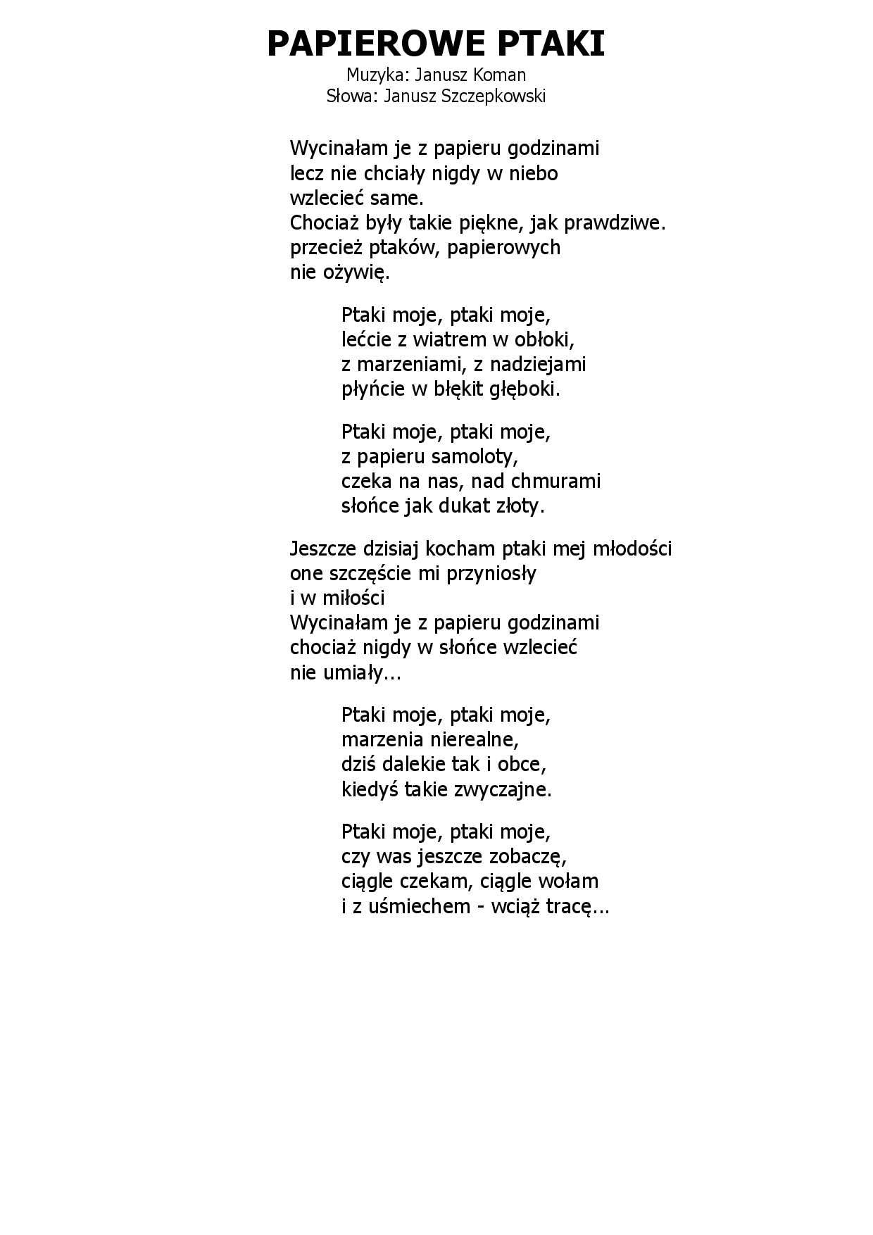 Papierowe ptaki Janusz Koman - Janusz Szczepkowski |