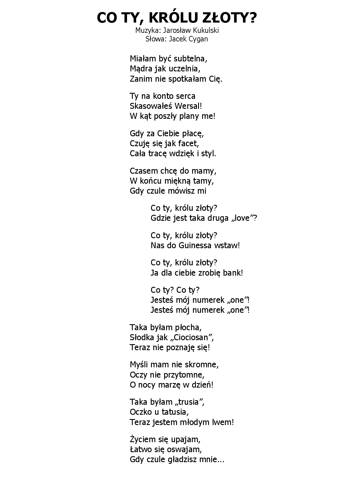Co ty królu złoty Jarosław Kukulski - Jacek Cygan |