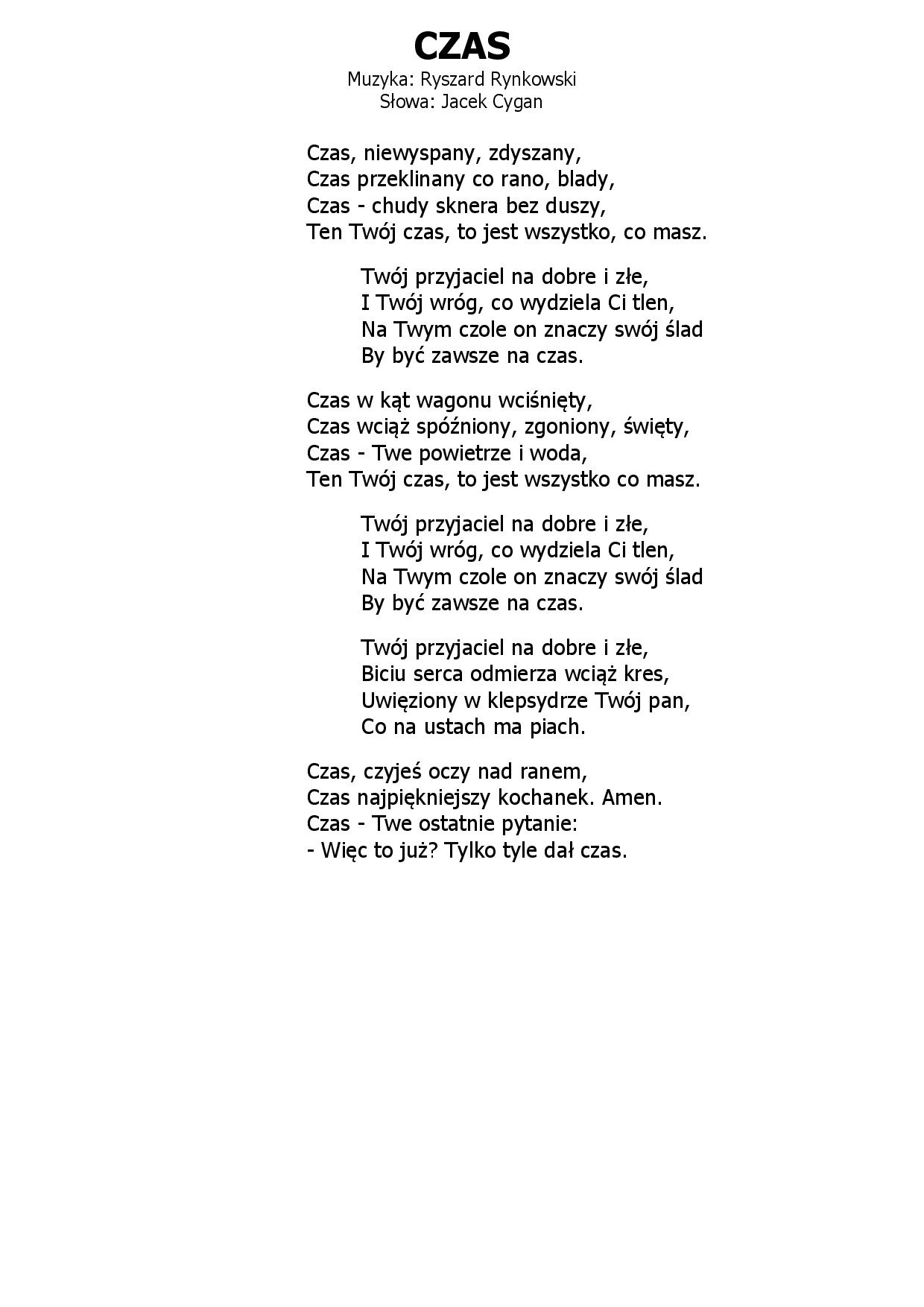 Czas Ryszard Rynkowski - Jacek Cygan |