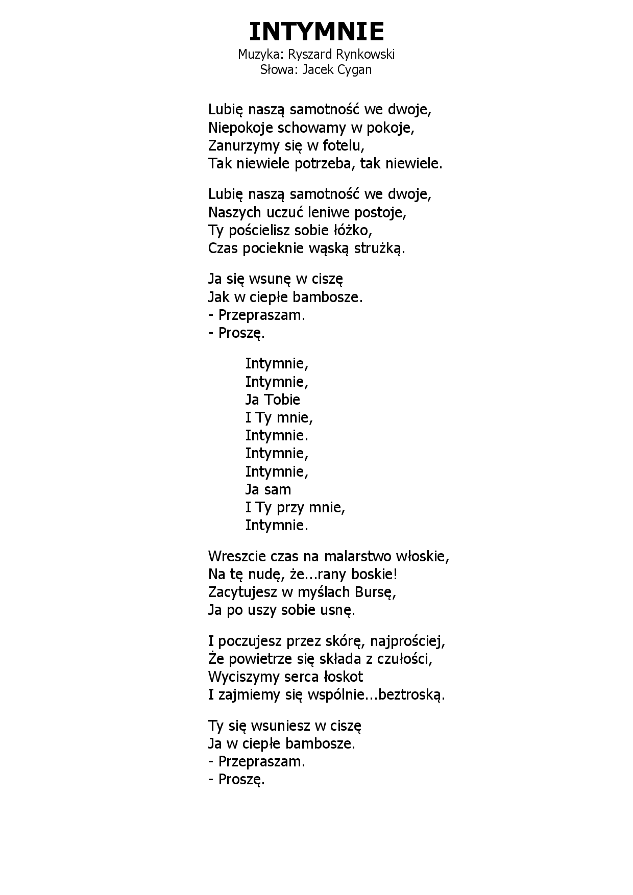 rozrywkowej. Współpracował m.in. z zespołem Crash oraz z kompozytorem Krzesimirem Dębskim. Napisał ponad 1000 tekstów piosenek, z czego wiele stało się znanymi przebojami. Pięć z nich zdobyło trofea na Krajowego Festiwalu Piosenki Polskie w Opolu. Jednym z jego największych przebojów artystycznych było napisanie tekstu piosenki do kompozycji „To nie ja!” skomponowanej przez Stanisława Syrewicza dla Edyty Górniak. Utwór reprezentował Polskę podczas 39. Konkursu Piosenki Eurowizji w 1994 roku i zajął ostatecznie drugie miejsce, osiągając tym samym najlepszy wynik w historii udziału kraju w widowisku oraz zdobywając tytuł „największego osiągnięcia polskiej piosenki za granicą”. W latach 80. silnie zaangażowany w rozwój polskiej muzyki dziecięcej. Współpracował z Majką Jeżowską, zespołem Papa Dance. Wspólnie wylansowali wiele nastoletnich gwiazdek, m.in. Magdę Fronczewską i Krzysia Antkowiaka. Współautor albumu Dyskoteka Pana Jacka. Program o tym tytule z piosenkami Cygana był emitowany w telewizji przez 10 lat. Jest autorem słów do Santo Subito – Cantobiografii Jana Pawła II. Muzykę do słów napisał Piotr Rubik. Koncert emitowała telewizja Polsat 12 i 13 kwietnia 2009. W kwietniu 2013 został odznaczony Srebrnym Medalem „Zasłużony Kulturze Gloria Artis”. W maju 2013 został odznaczony Orderem Uśmiechu, który odebrał w swoim rodzinnym mieście w Szkole Podstawowej nr 15, której niegdyś sam był uczniem. W listopadzie 2014 otrzymał tytuł honorowego obywatela miasta Sosnowca. Wykonawcy Piosenki z jego tekstami usłyszeć można w wykonaniu m.in.: Krzysztofa Antkowiaka, Hanny Banaszak, zespołu Wanda i Banda, Ewy Bem, Moniki Borys, Jana Borysewicza, Tadeusza Brosia, Violi Brzezińskiej, Jarka Bułki, zespołu Deef, zespołu Dwa Plus Jeden, Haliny Frąckowiak, Magdy Fronczewskiej, Kasi Fronczewskiej, Piotra Fronczewskiego, Michała Gasza, Edyty Geppert, Edyty Górniak, Jacka Granieckiego, Moniki Gruszczyńskiej, Karoliny Gruszki, Majki Jeżowskiej, Anny Jurksztowicz, Kayah, KOMBI, Kombii, Seweryna Krajewskiego, duetu Krzysiek i Rysiek, Joanny Kurowskiej, Ewy Kuklińskiej, zespołu Lady Pank, Toma Logana, Anny Józefiny Lubienieckiej, Grażyny Łobaszewskiej, Anny Mamczur, Grzegorza Markowskiego, Marty Moszczyńskiej, Zofii Nowakowskiej, Papa Dance, Jerzego Połomskiego, Krystyny Prońko, Maryli Rodowicz, Roberta Rozmusa, Ryszarda Rynkowskiego, Piotra Schultza, Andrzeja Sikorowskiego, Krzysztofa Krawczyka, Wojciecha Skowrońskiego, Stanisława Sojki, Zdzisławy Sośnickiej, Pawła Stasiaka, Ani Stawieraj, Mieczysława Szcześniaka, Hanny Śleszyńskiej, Grzegorza Turnaua, Urszuli, Stanisława Wenglorza, Grzegorza Wilka, Zbigniewa Wodeckiego, Jacka Wójcickiego, Beaty Wyrąbkiewicz, Łukasza Zagrobelnego, Mariny Zacharowej, Andrzeja Zauchy, Kasi Zdulskiej, Nataszy Urbańskiej, Borysa Szyca, Naszej Basi Kochanej, Sylwii Grzeszczak i Jerzego Filara. Nagrody 1976 – pierwsza nagroda na Festiwalu Piosenki i Piosenkarzy Studenckich w Krakowie 1978 – nagroda Programu Trzeciego Polskiego Radia za piosenkę „Rozmowa” 1984 – nagroda w konkursie Programu Trzeciego Polskiego Radia za piosenki „Kobieta Wschodu”, „Pro-test song”, „Sól na twarzy” 1984 – nagroda specjalna jury na 21. Krajowego Festiwalu Piosenki Polskiej w Opolu za piosenkę „Jaka róża taki cierń” 1987 – tytuł piosenki roku dla piosenki „Stan pogody” w plebiscycie słuchaczy Magazynu Muzycznego Rytm 1989 – tytuł przeboju Lata z Radiem i Programu Pierwszego Polskiego Radia dla piosenki „Wypijmy za błędy'” 1991 – druga nagroda podczas 28. Krajowego Festiwalu Piosenki Polskiej w Opolu za piosenkę „Muszelko, ratuj mnie” 1994 – Grand Prix i pierwsza nagroda podczas 31. Krajowego Festiwalu Piosenki Polskiej w Opolu za piosenkę „Mrok” 2012 – Nagroda Literacka Srebrny Kałamarz za tomik „Pies w tunelu” |