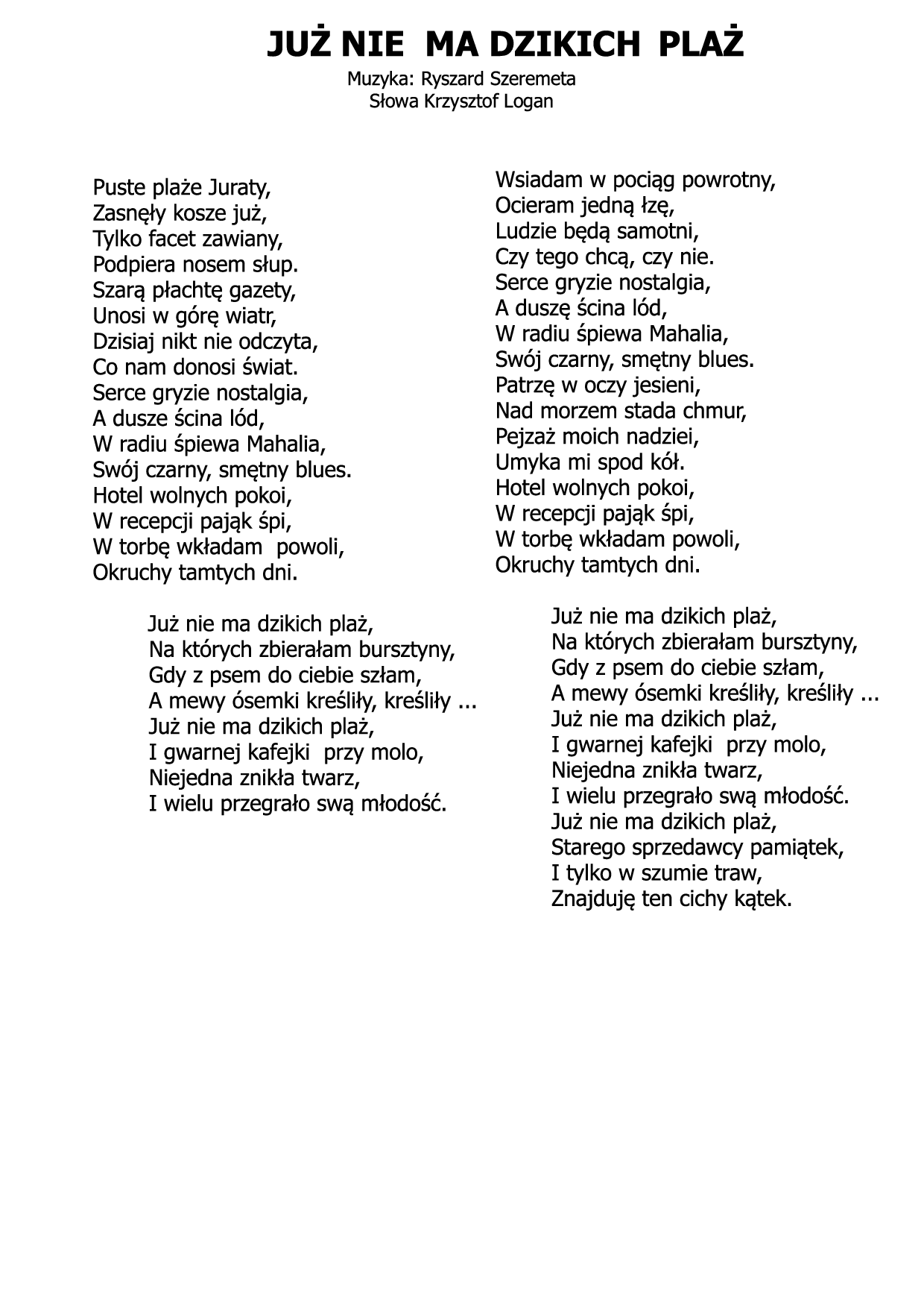 nie ma dzikich plaż Ryszard Szeremeta - Krzysztof Logan Tomaszewski |