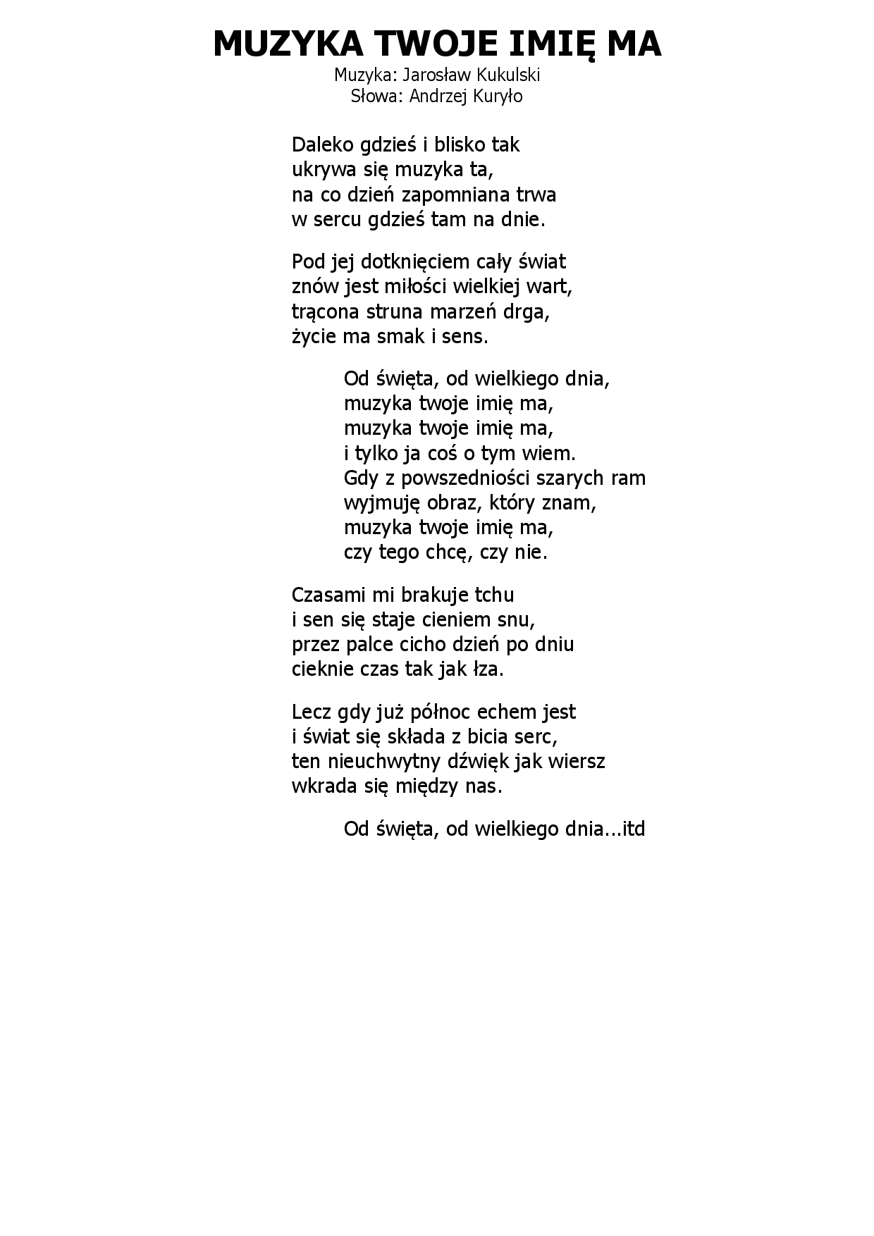 Muzyka twoje imię ma Jarosław Kukulski - Andrzej Kuryło |