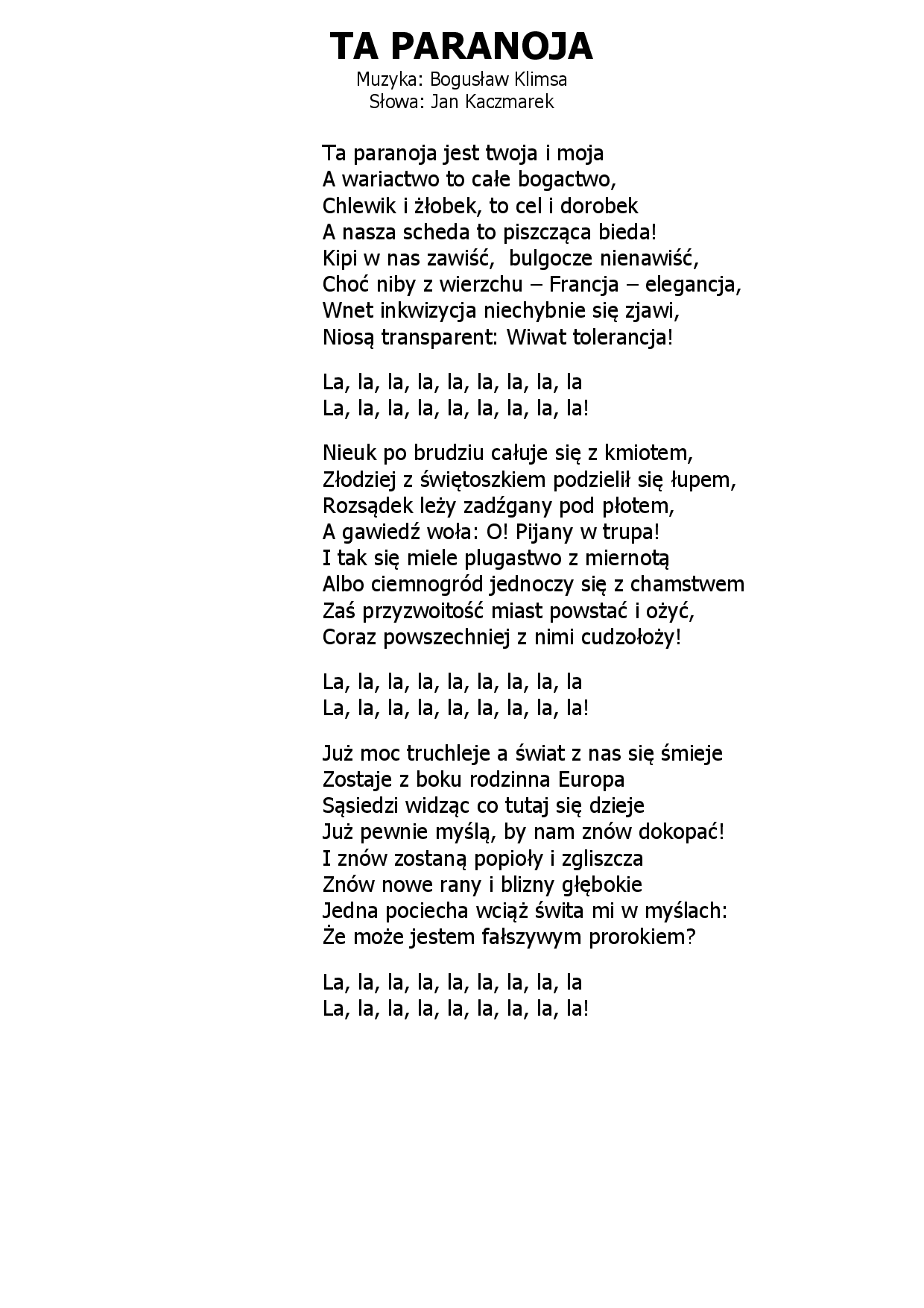 Ta paranoja Bogusław Klimsa - Jan Kaczmarek |