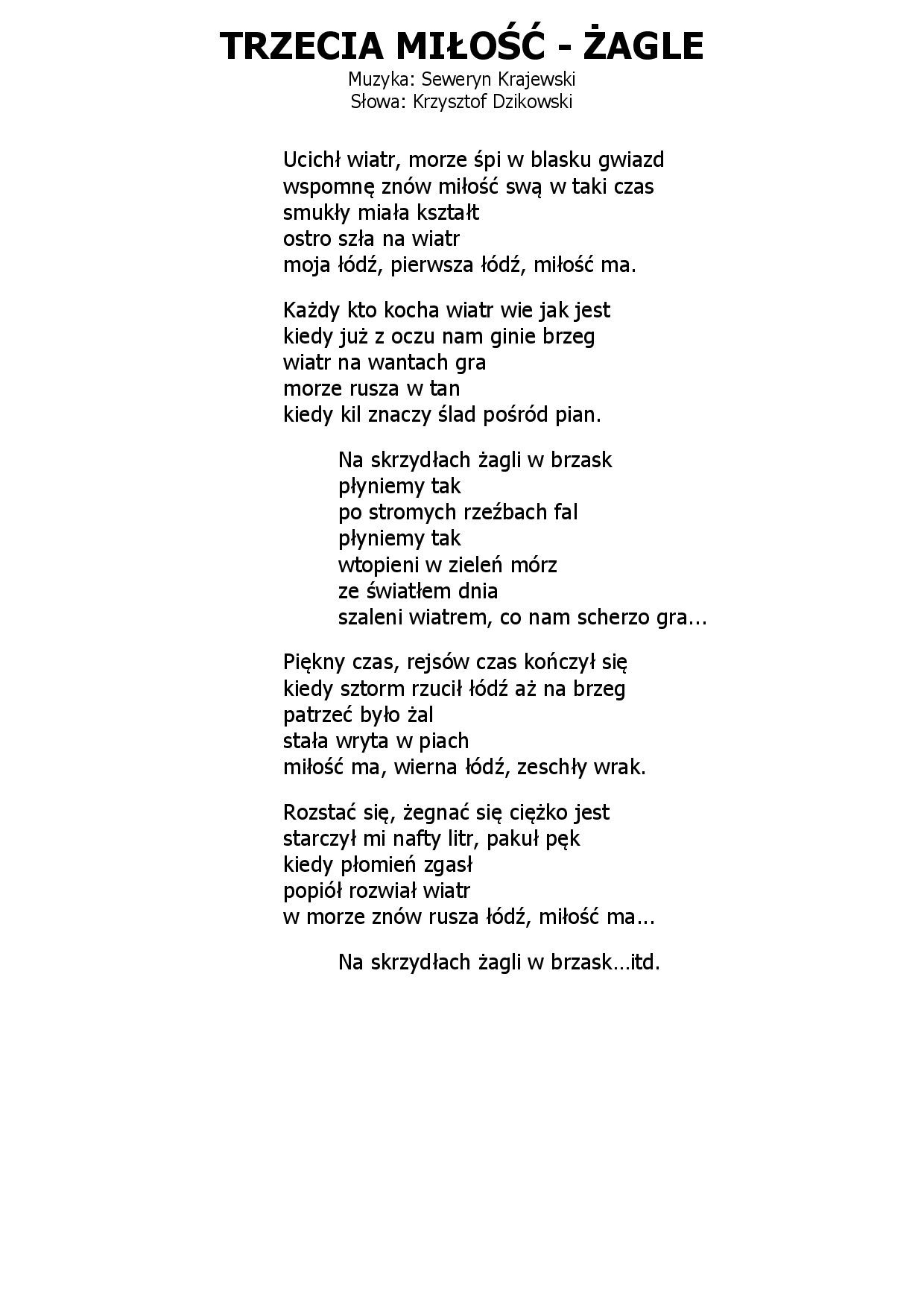 Trzecia miłość - żagle Seweryn Krajewski - Krzysztof Dzikowski |