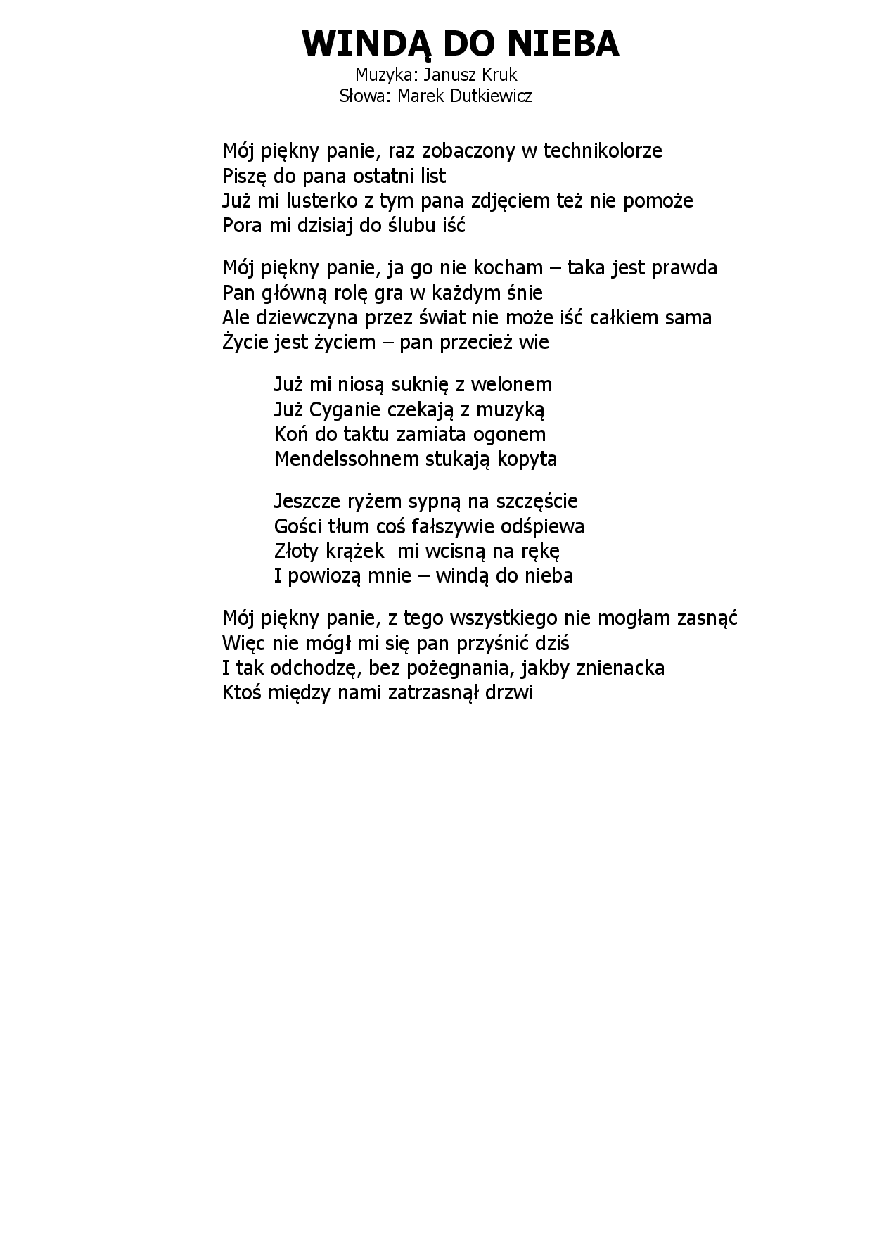 szkoda dnia”, „Windą do nieba” z lat 70.,